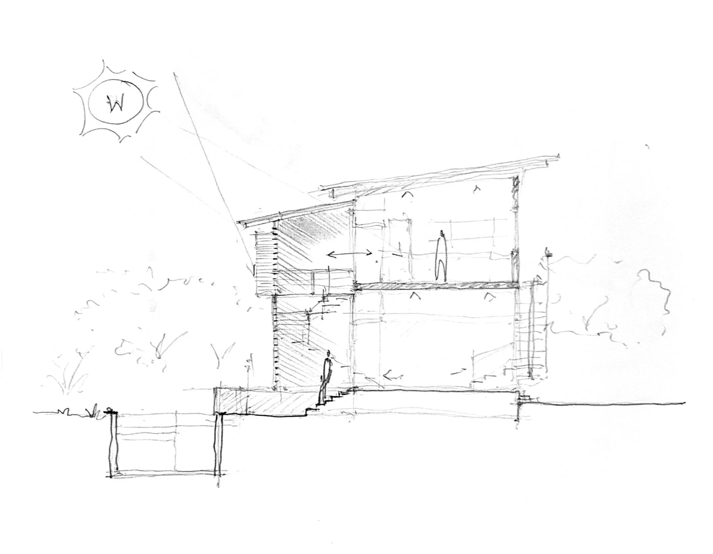 The redesigned residence at Boom Beach features significant alterations and additions aimed at improving sun management and enhancing livability. Originally facing west, the house was exposed to the intense afternoon sun, which increased indoor temperatures. The new addition introduces an outdoor terrace and employs wooden slats to provide shade and reduce solar exposure. These slats serve a dual purpose: offering privacy and creating a play of light and shadow that evokes the dappled effect of a tropical canopy. This design not only moderates heat but also imbues the interior with a refreshed, airy ambiance, seamlessly blending with the natural beachfront setting.